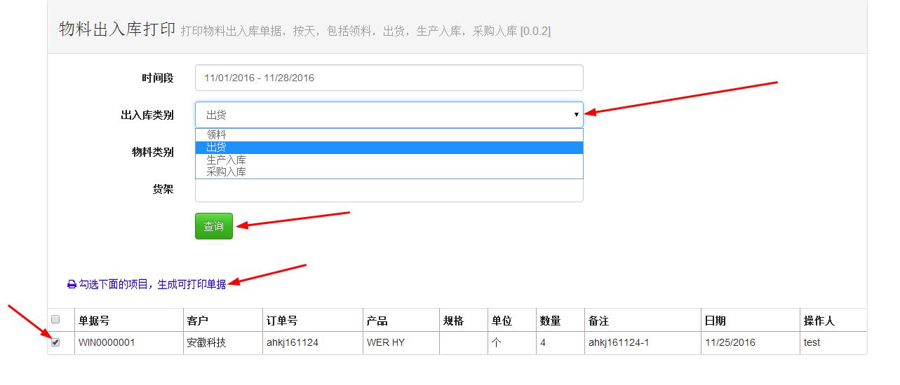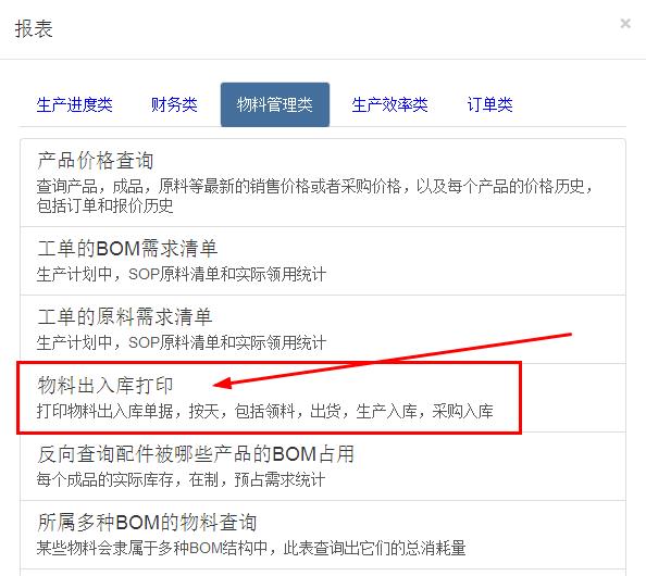 您的位置:首頁 > 培訓教程 > ERP/MES軟件基礎 速易天工MES系統如何補打出入庫單據 來源:通商軟件2016-12-012016-11-28 ERP系統 & MES 生產管理系統 10萬用戶實施案例,ERP 系統實現微信、銷售、庫存、生產、財務、人資、辦公等一體化管理 立即注冊免費體驗 在使用速易天工MES系统的时候,可能会遇到需要补打出入库单据的情况。这种情况怎么处理呢? 速易天工MES系统在开发的时候就考虑到这种情况,所以在报表里集成了这样的功能 首先,找到报表菜单,点击后找到物料管理类的物料出入库打印,如下图 点击物料出入库打印后会显示如下图的页面 选择时间段,出入库类别选择后,点击查询,会出现历史内容,勾选√需要打印的信息,最后点击“勾选下面的项目,生成可打印单据”,会跳出打印页面,直接在页面打印就完成了,如下图 在線疑問仍未解決?專業顧問為您一對一講解 24小時人工在線已服務6865位顧客5分鐘內回復 馬上咨詢