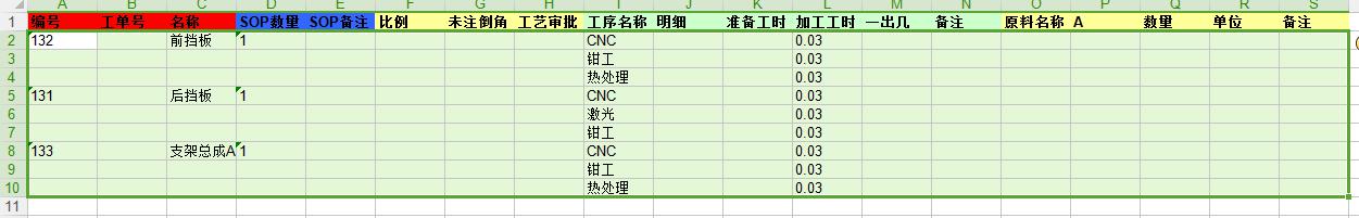 • 点击用批量修改–Excel批量编辑SOP(在物料页面)或者Excel批量编辑SOP(在排工艺页面),如下图