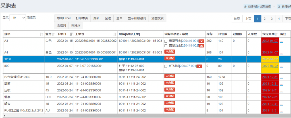 4、他们的生产方式是有客户订单才开始生产,材料也是等有订单才购买,故生产周期较长,工单数量也是小批量的。采购部需要系统查看物料的库存,盘点购买数量。