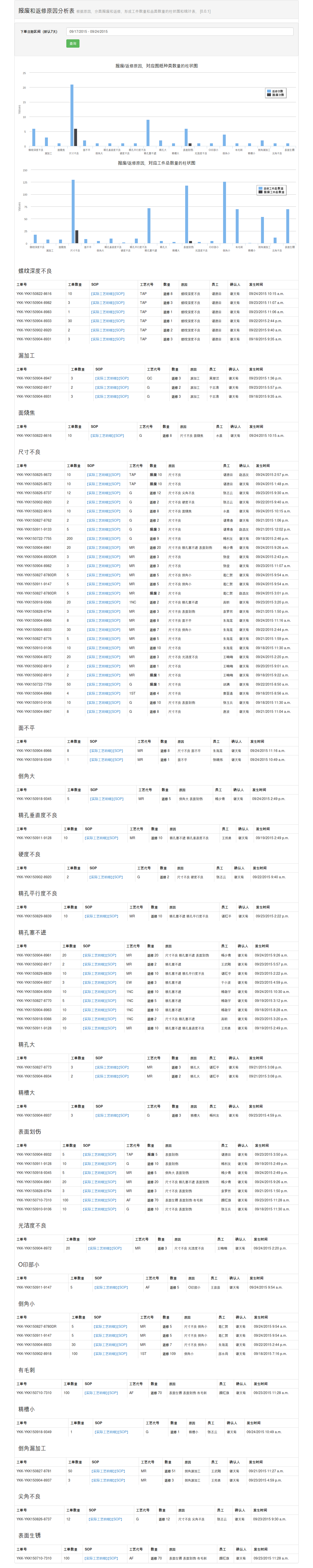 我們來看一張“報廢和返修原因分析表”報表。