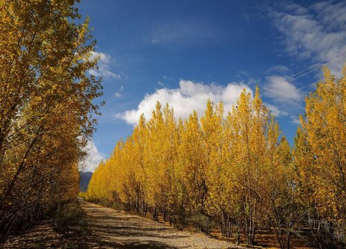 白楊樹的葉子為卵圓形,葉片的先端較短,葉子的形狀就像是一個(gè)桃子,也像一個(gè)心形,更像是一把小扇子。白楊樹的葉片顏色隨著季節(jié)變化而變化,在初秋時(shí)期還是綠色的,而到了秋末冬初落葉前,它的葉片就變成黃色的,風(fēng)一吹整個(gè)樹上的葉片就會(huì)漫天起舞。