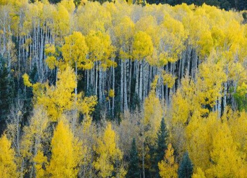 白楊樹的葉子的顏色隨著季節(jié)變化而變化,在初秋時(shí)期還是綠色的,而到了秋末冬初落葉前,它的葉片就變成黃色的。